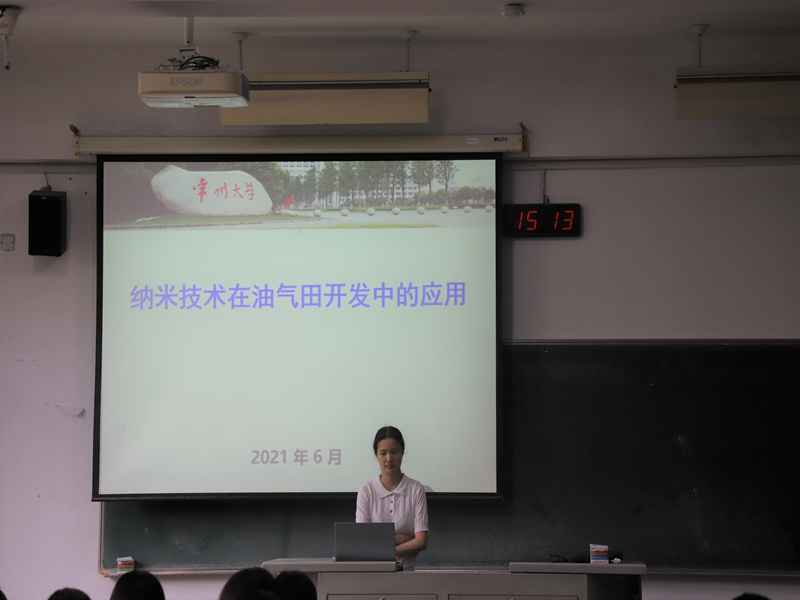 为加强学生对所学专业知识的了解,提升专业技能。2021年6月10日下午15:15,石油工程学院“纳米技术在油气田开发中的应用”博士讲坛在教学主楼W1213举办,本次讲坛主讲人为廖凯丽老师,石油工程学院部分学生参加此次博士讲坛。