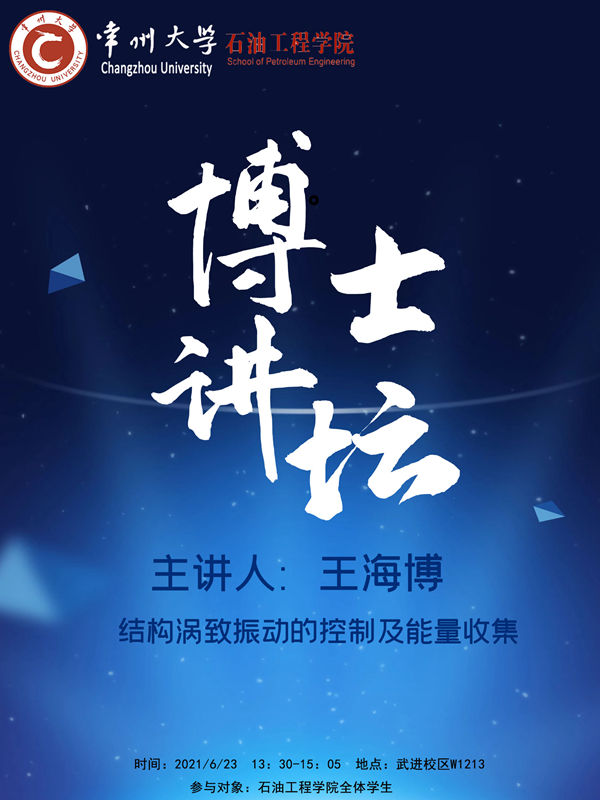 石油工程学院成功开展“结构涡致振动的控制及能量收集”博士讲坛