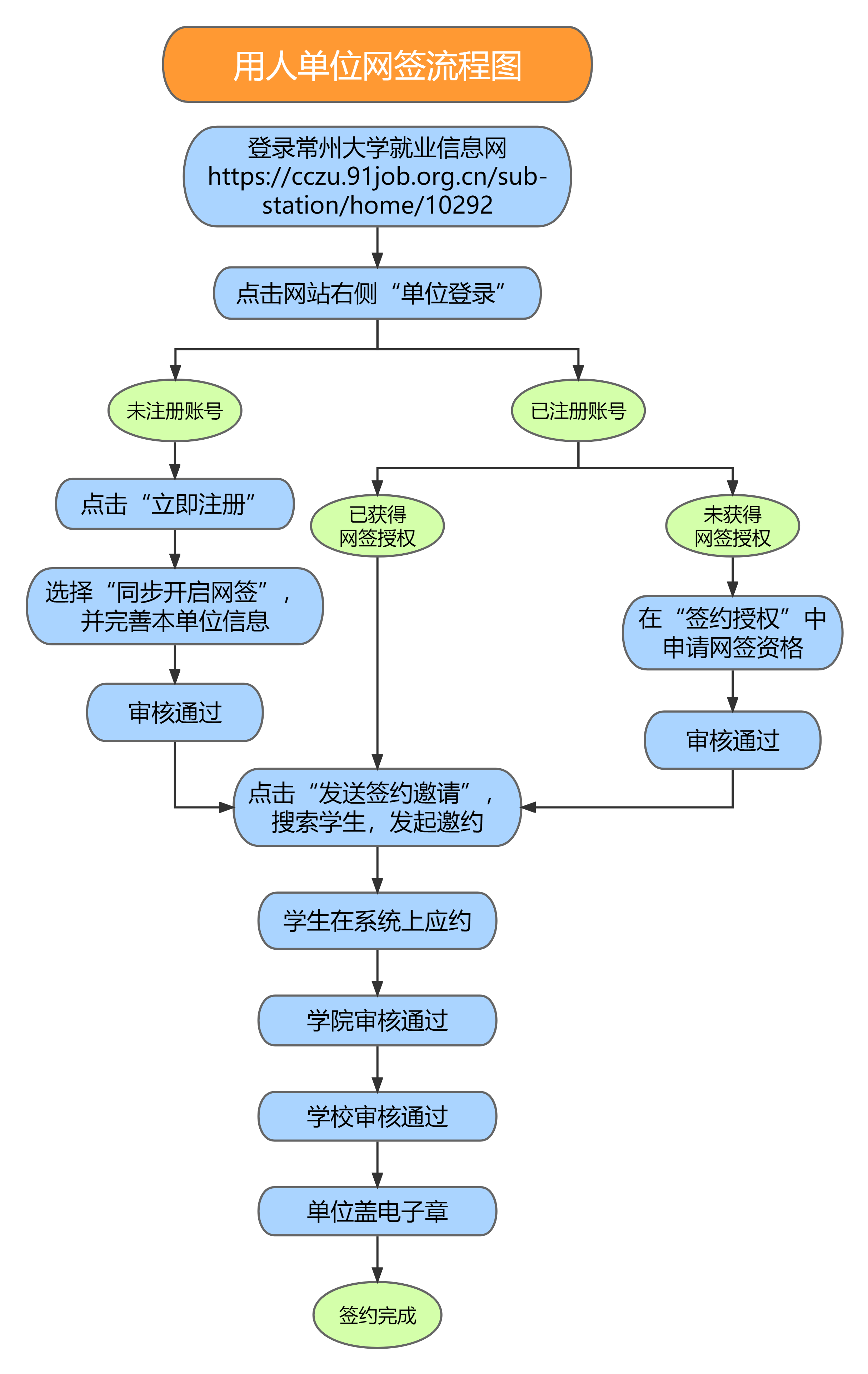 感谢选聘我校2022届毕业生!因受疫情影响,部分地区线下签约不便,特提供网上签约流程图,以供有网签需求的单位参考。