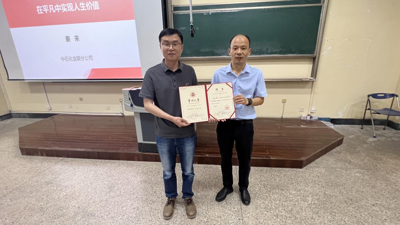 讲座开始前,王永在讲座现场为姜来颁发职业生涯规划导师聘书,并对他的到来表示欢迎和感谢。