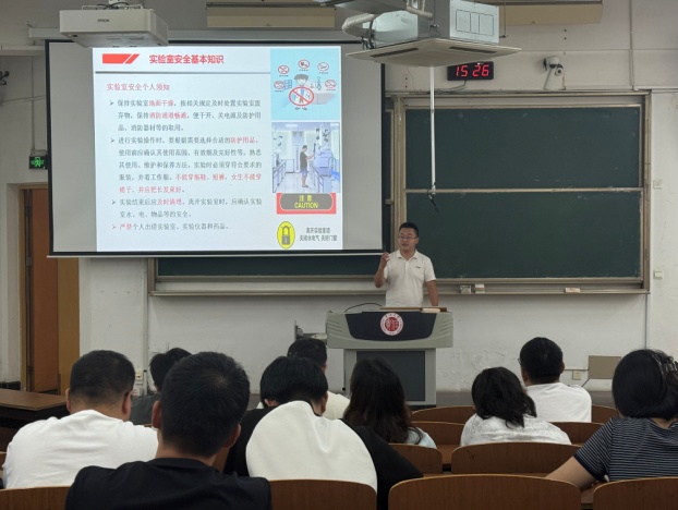为进一步规范实验室安全教育培训工作,确保应急演练及安全培训常态化开展,根据学校实验室处通知要求,永利官网于9月20日在W15教室举办了实验室安全培训。本次培训由实验中心主任饶永超主讲,全体研究生新生参加。