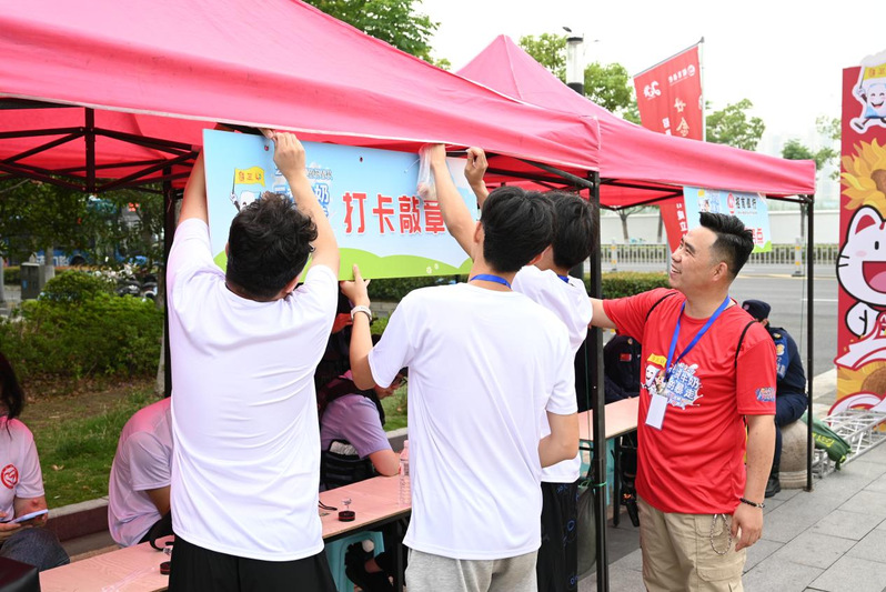 活动现场,永利官网志愿者分散在各点位,成为赛道上温暖的风景。在转弯处,他们高举指示牌,为选手指引方向;物资发放点前,志愿者有条不紊递上补给品,关心选手需求;打卡盖章处,志愿者认真核对信息,确保成绩记录准确;在休憩驿站,志愿者各展才艺,为参赛者加油鼓劲。