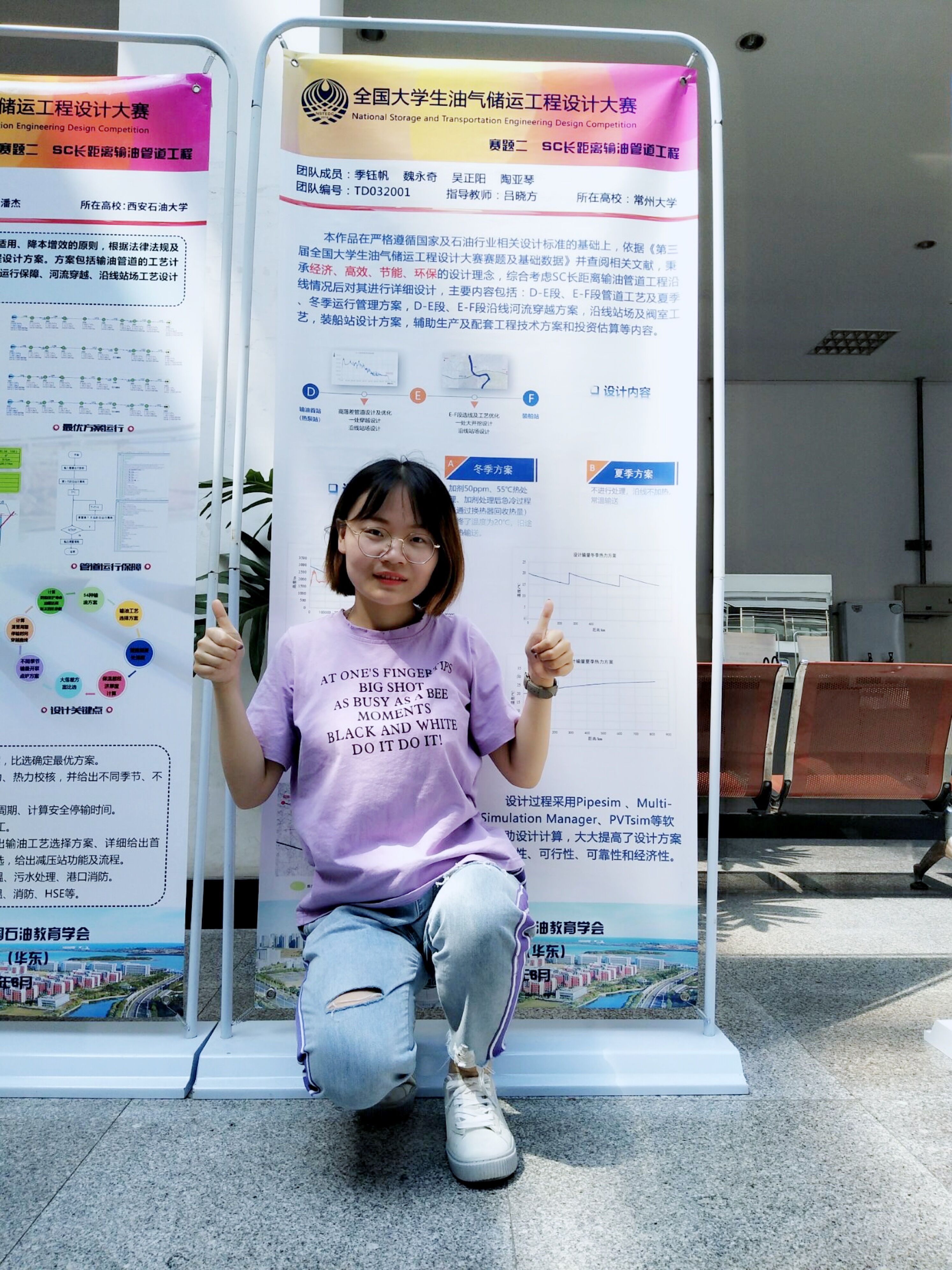 个人简介陶亚琴河南信阳人中共党员储运151班学生曾担任班级班长院科学与技术协会副主席曾多次获得校特等一等奖学金、校“三好学生”称号,并获得“学生标兵”荣誉称号,第三届全国油气储运工程设计大赛一等奖,2019年以414分考入重庆大学动力工程专业
