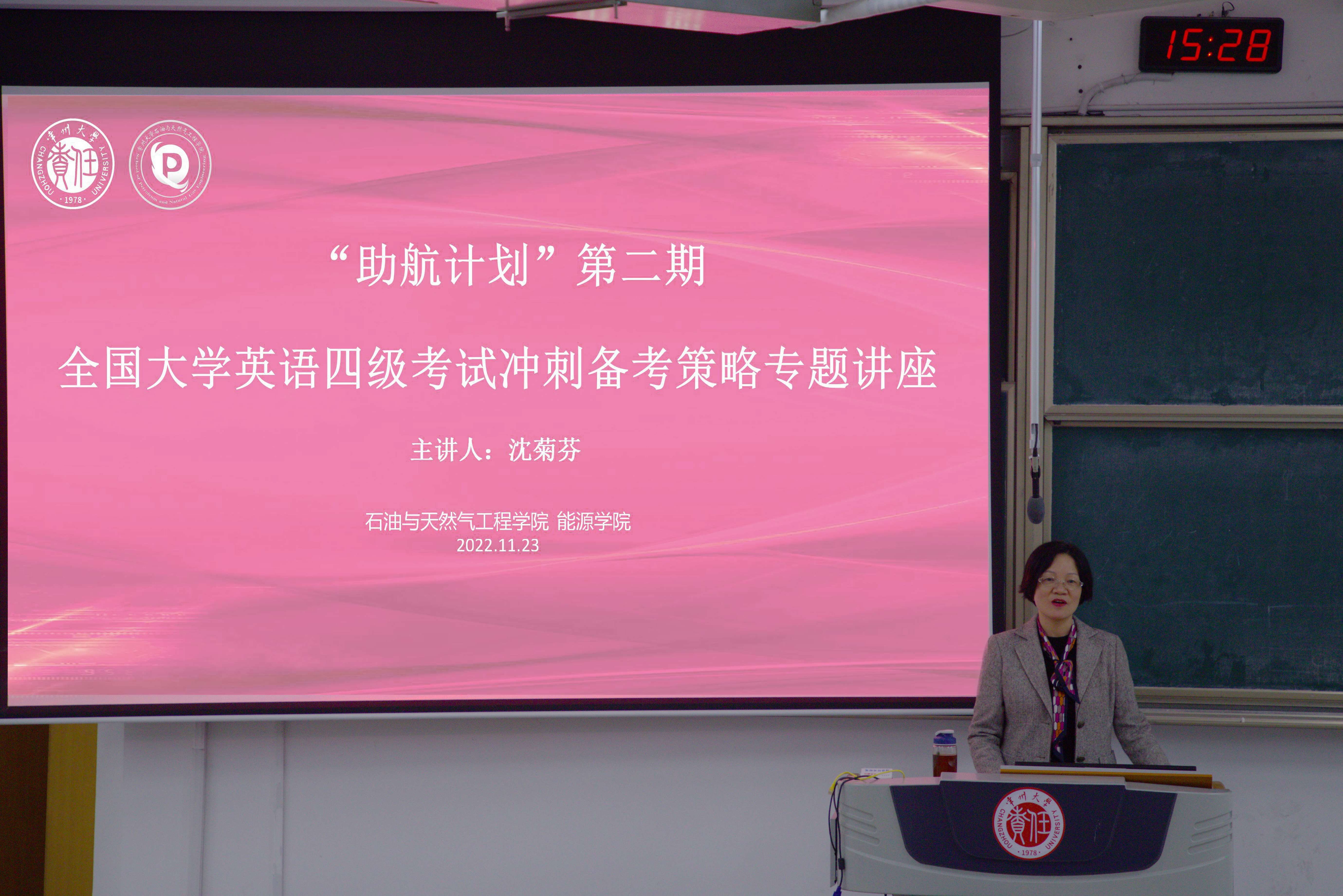 11月23日下午,为鼓励和指导永利集团88304官网集团、能源学院尚未通过英语四级考试的同学积极备考,学院邀请外国语学院沈菊芬副教授专题讲授大学英语四级冲刺备考策略。本次讲座共有102位学生参加。